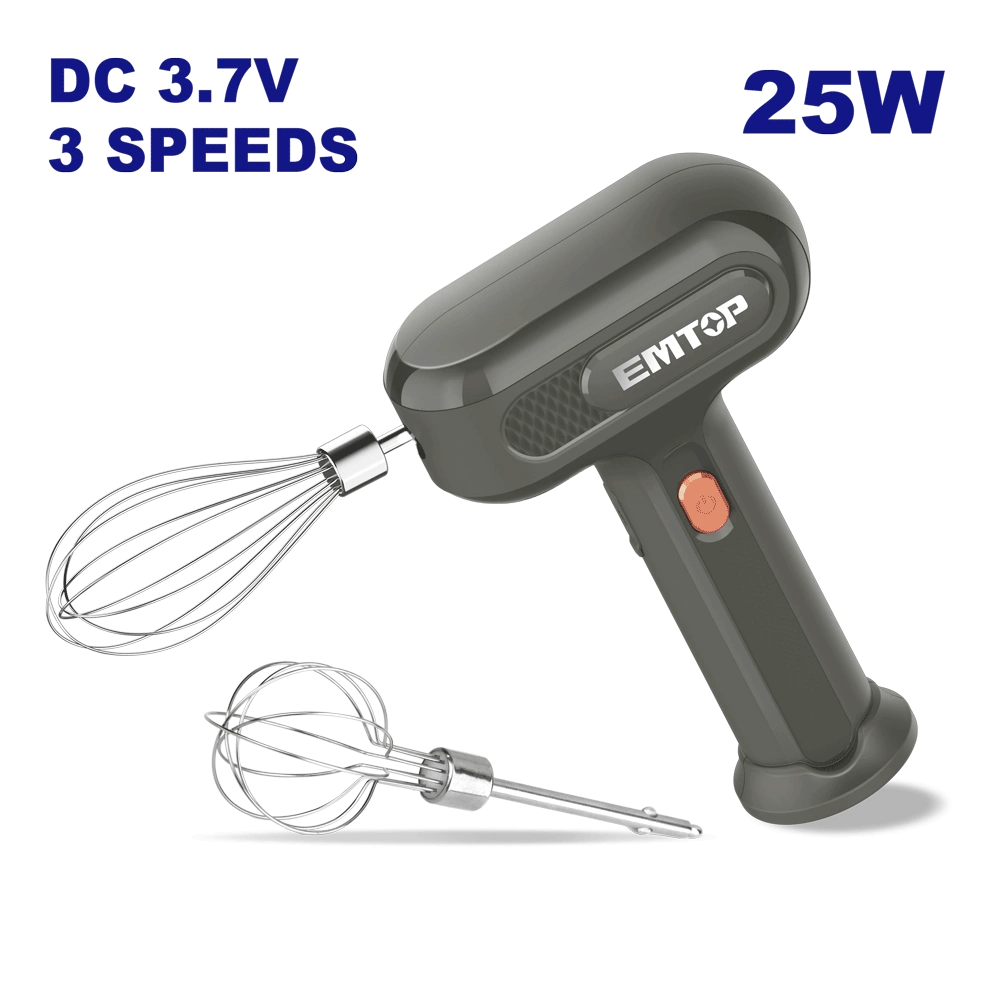 Le batteur électrique sans fil EMTOP EFM019U est l’outil idéal pour toutes vos préparations culinaires. Grâce à sa puissance de 25 W et à sa batterie rechargeable 1500 mAh, il vous offre une liberté totale de mouvement. De plus, ses 3 vitesses réglables et son contrôle précis permettent d’obtenir des résultats homogènes, que ce soit pour monter des blancs en neige, préparer des sauces ou fouetter une crème.