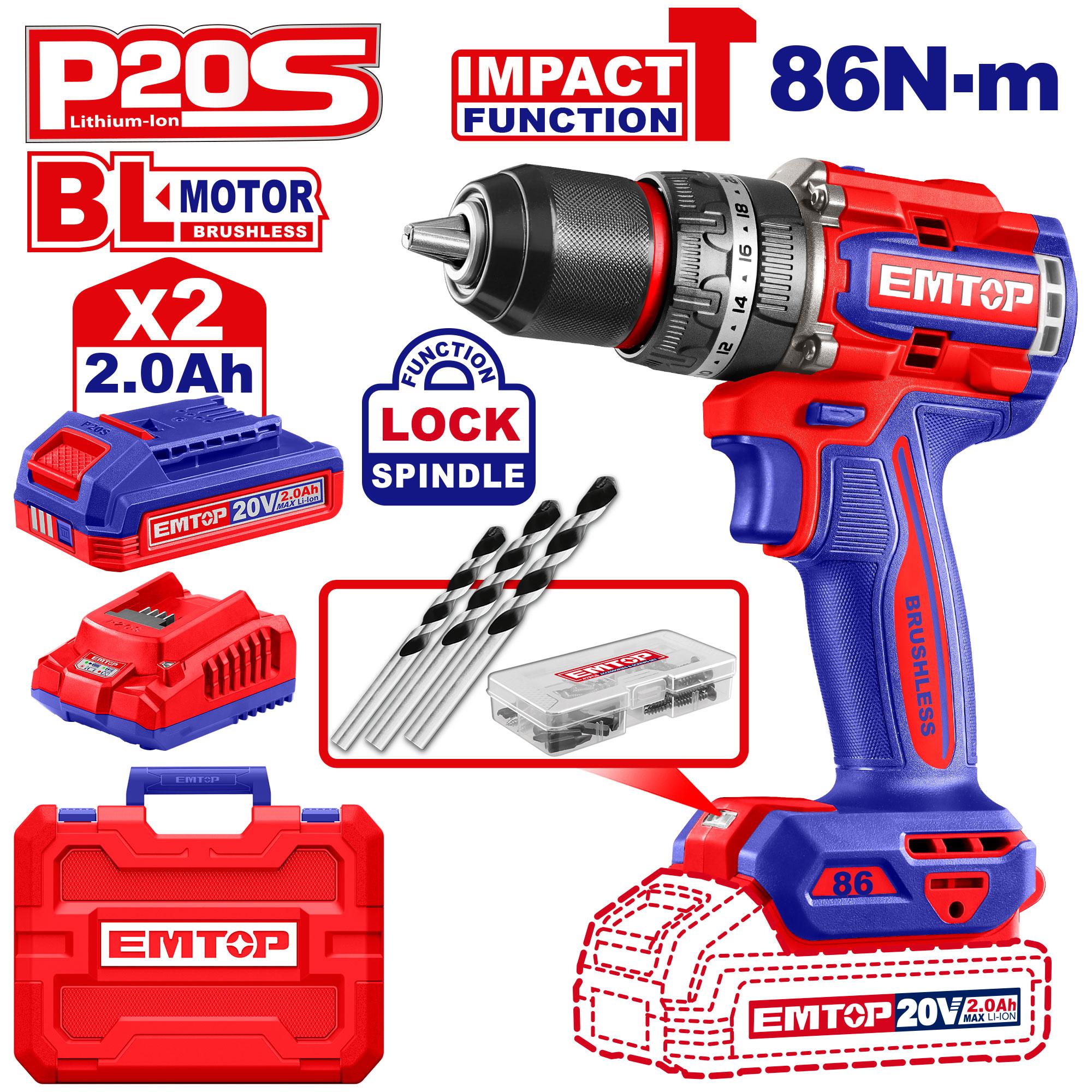 PERCEUSE VISSEUSE 20V 86NM 2B2AH EMTOP ECIDL208687