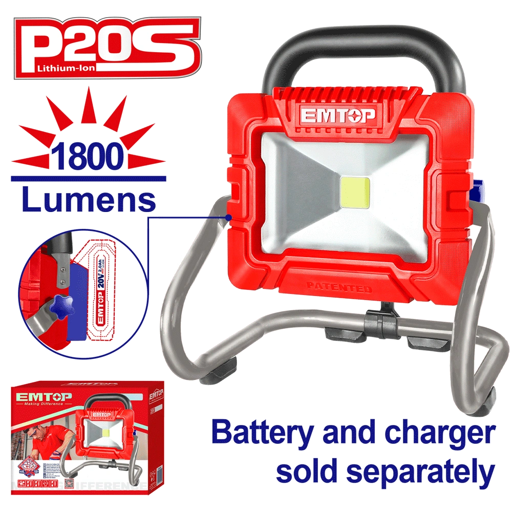 PROJECTEUR LED 1800 LUMENS 20V EMTOP LWL2025